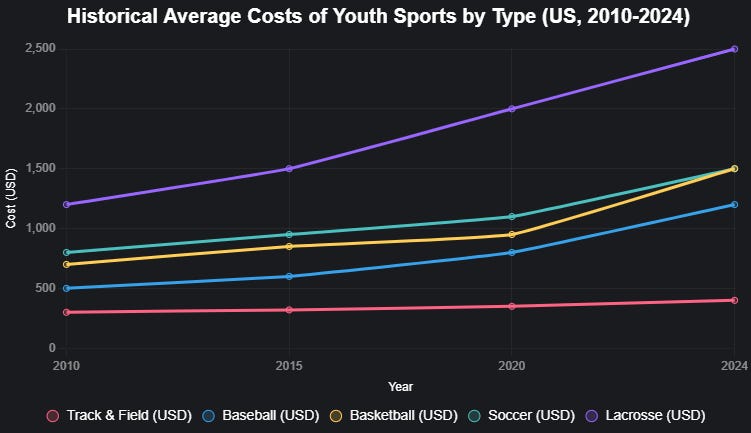 Fast forward to today, and a Vice article caught my eye on X: “Is This the End of Youth Sports?” It paints a stark picture of private equity turning kids’ games into profit-driven enterprises, pricing out families, and draining the fun from play [1]. As a dad to two active boys (now 11 and almost 12) who’ve also tried youth lacrosse, football, running club, soccer, and paintball at Bear Ridge, this hits home. Digging deeper, I found reports confirming a decline in participation, especially in Georgia where elite “travel” programs are becoming symbols of the cost barrier. Is this just the little league free market doing its thing, or are we letting costs and pressures rob our kids of a childhood staple?