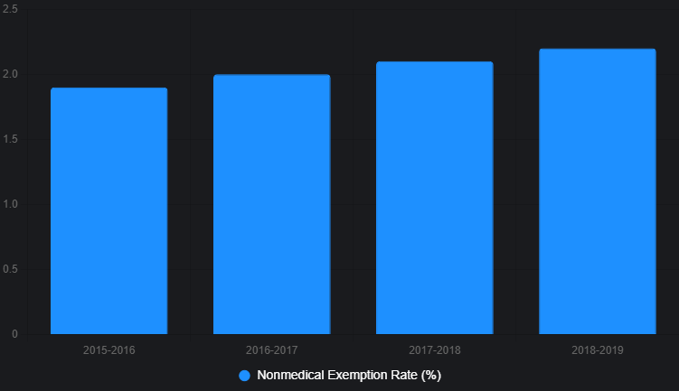 Table: U.S. Kindergarten Nonmedical Exemption Rates (2015-2019)